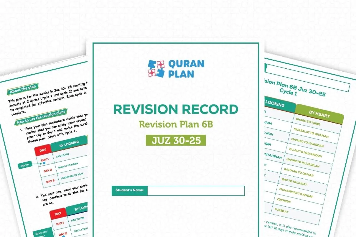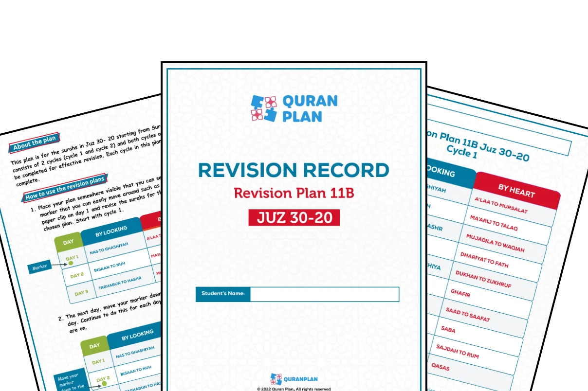 Why not combine this memorisation record with revision plan 3B to revise the surahs and maintain a strong hifdh?